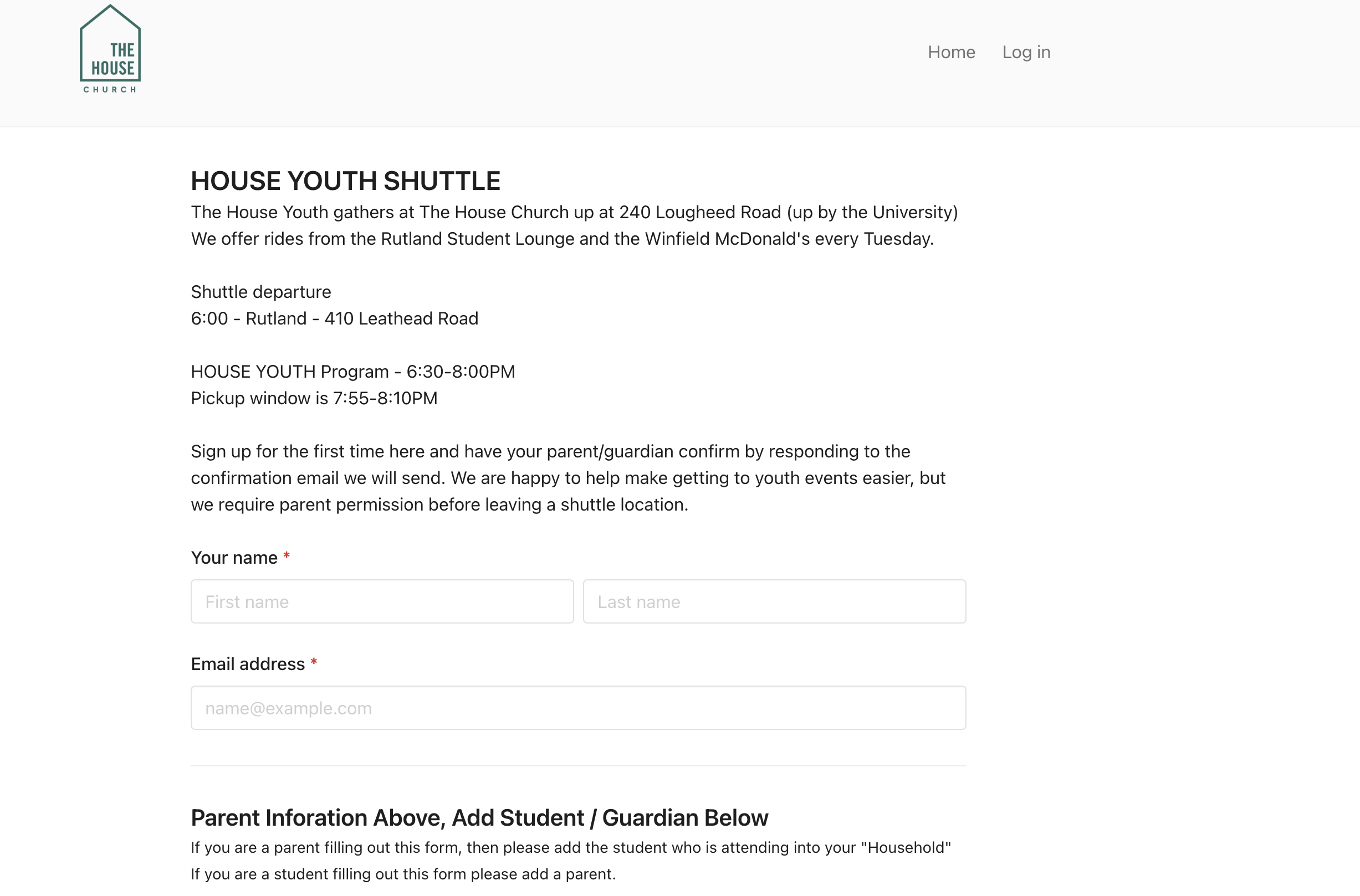We recognize that the house Church is hard to get too, so we offer a weekly shuttle to the House Youth.